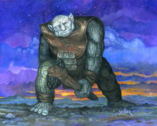 |  | Illustration  Trolls are described as large humanoids of great strength and poor intellect. In Tolkien's writings they are portrayed as evil, stupid, and crude. From “The Lord of the Rings,” the epic fantasy novel written by J. R. R. Tolkien.< Previous | Back to gallery | Next > |  |