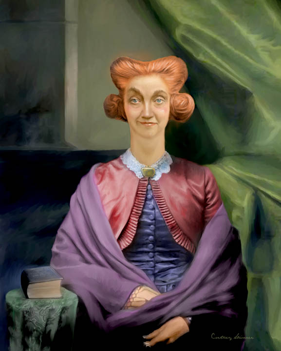 Here's my painting of Guanaca Cavinder. She was the lover of Marchese Guglielmo Marconi who developed his first radio antenna based on her hairstyle. During their passionate lovemaking trysts, “Gug” and “Guani” would exchange ardent double entendres and euphemisms all taken from the terminology of his patent application, “Detecting electrical oscillations" Filed Feb 2, 1903. < Previous | Back to gallery | Next > |