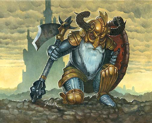 A Dwarf Warrior with his armor and with his battleaxe from J. R. R. Tolkien's epic fantasy The Lord of the Rings.