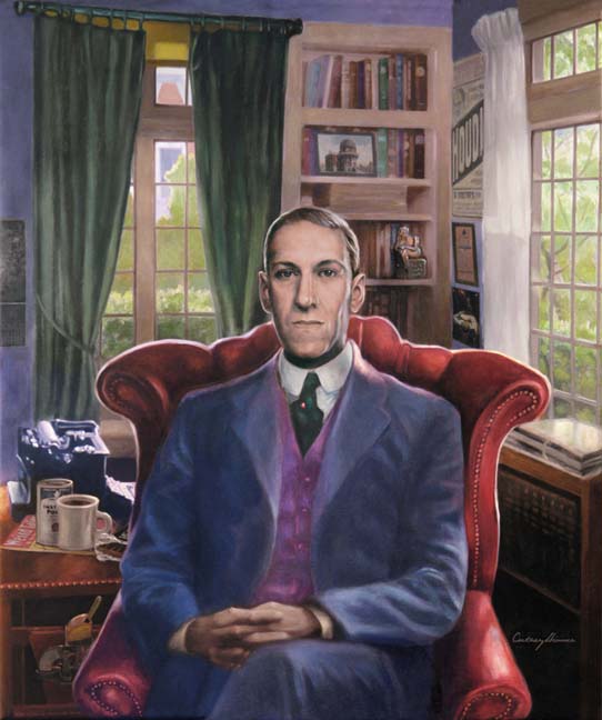 A formal portrait of author H.P. Lovecraft (1890–1937) painted in oil on canvas, 20" X 24" for a private commission.